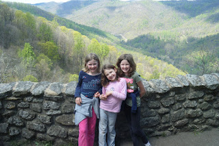 We spent two nights at Crabtree Falls and had a great time despite the 30 degree temperatures at night :0). Here's Elise with her giant fire that made mom nervous and a view of the river that was right next to our campsite. The kids spent most of their time here and wished the water was a little warmer. Danny even got adventurous here and decided to show the kids that he could leap over the falls. Do as I say...not as I do...right? I was impressed that he made it and amused that he fell in while walking back to the side.